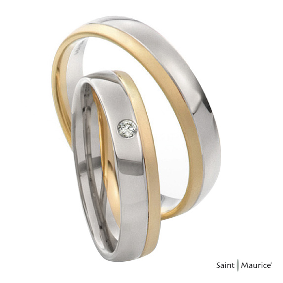 Ring voor: Saint Maurice 49-81204 Damesring – Geel en Witgoud 4,5 mm breed en heeft een 0,030 karaat diamant.